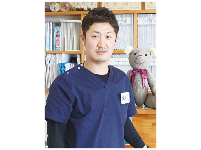 以前はスポーツトレーナーだった田中さん。スッキリ・ガッチリした体型とはにかんだ笑顔が印象的。今は鍼(しん)灸整骨院で地域の人たちの健康や女性の美容をサポートしています