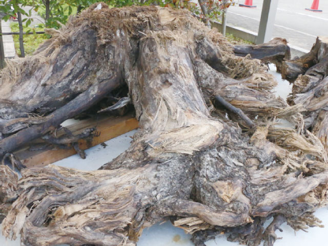 2021年10月、水軒口交差点から秋葉山交番まで(国道42号)の地下共同溝設置工事の際、掘り出される伐採根の様子を同大の藤本清二郎名誉教授が偶然発見。