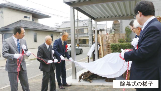 和歌山大学松下会館(和歌山市西高松)の敷地北側一角に、和歌山県の歴史遺産、和歌浦街道松並木・遺物「伐採根」の保存設備が整い、1月26日、同会館で保存展示披露式典が行われ、関係者約40人が出席しました。