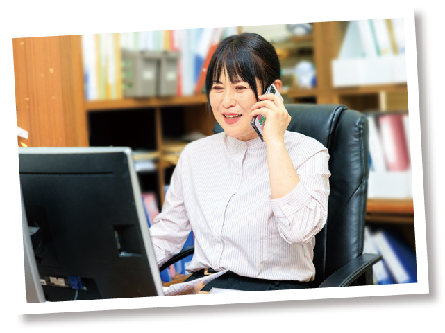 ー取引先との打ち合わせや請求書の処理、従業員の管理などをしています。他にも、毎日、皆が現場に出られるよう、営業活動も注力しています。