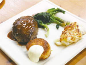 料理を盛り付ける松本さん