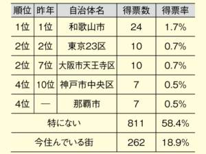 「住みたい街ランキング」も、同時に発表されました。1位に輝いたのは和歌山市で、7年連続で首位をキープしています。2位は東京23区と大阪市天王寺区が同率。4位も同率で、神戸市中央区と那覇市。那覇市は、今回新たにランクインしています。