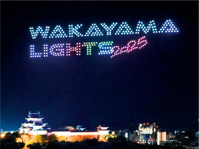 昨年よりパワーアップしたドローンショー。和歌山城公園西の丸広場を主要観覧エリアとして、500機のドローンが和歌山城天守閣上空に、光のアートを描きます。テーマは「天空の祝祭」(午後7時から約15分間)。また、ドローンショー終了後は、天守閣の入場時間が延長。夜景も楽しめます(入場料必要)。