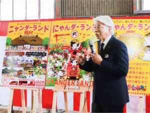 今月行われた和歌山電鐵運行20周年記念式典で、小嶋光信社長(左写真)は沿線の活性化に向けた「ニャンダーランドin和歌山」構想を発表。「これからの10年間は、〝行ってよし、住んでよし、働いてよし〟のまちづくりを行い、公共交通が地域の発展にどう関わっていけるか実証していきます」と話しました。