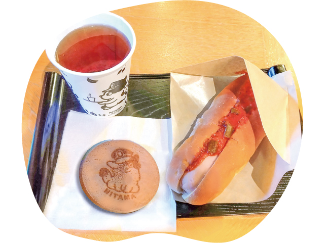 貴志駅舎内にある待合室を兼ねたカフェ。“ネコ”をイメージしたドリンクやアイスクリームの他、ホットドッグならぬ、魚肉ソーセージを挟んだ「ホットキャット」が味わえます。ネコの顔をモチーフにした、ひわだぶきの屋根も見どころの一つ。隣の「たまショップ」では、駅長たまグッズもそろっています。駅舎全てを堪能して。