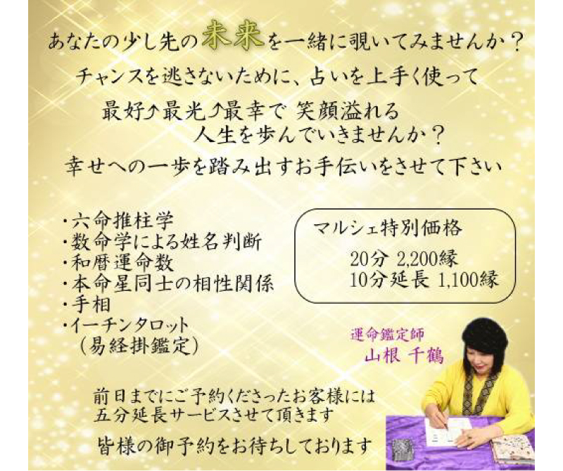 | 運命鑑定師 山根千鶴 | 期間|3月6日(金)~7日(土) |