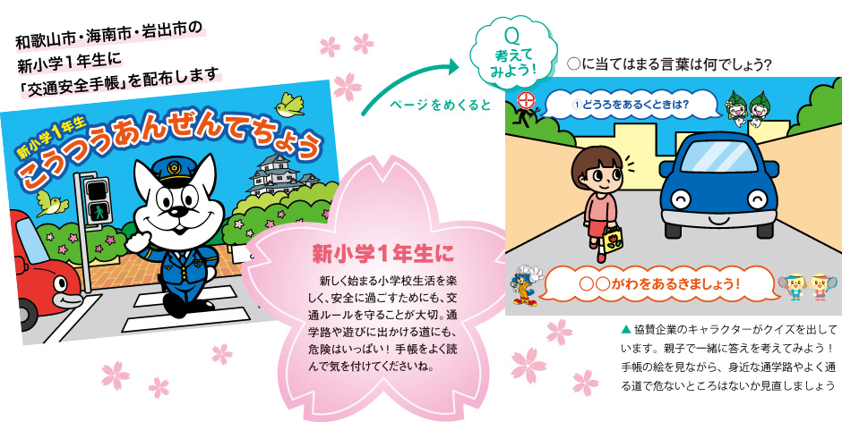 和歌山リビング新聞社では子供たちの交通事故防止のために「通学デビュー」する小学新1年生を対象に「交通安全キャンペーン2026」として、「こうつうあんぜん てちょう」を配布し、学校での交通安全教育に役立てていただくとともに、家庭でも親と子が安全ルールを確認し合う機会にしていただければと考えています。また、本事業を通じて地域社会が一体となって子供たちを守る意識を醸成できればと考えています。
