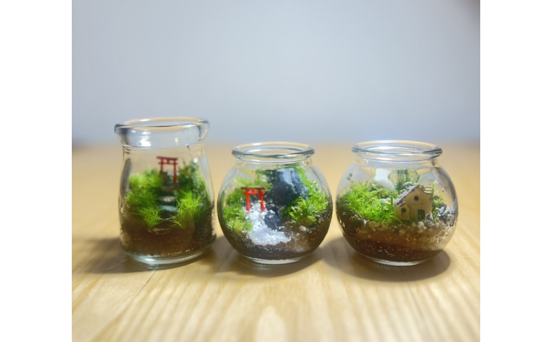 | 体験料 | 苔テラリウムS(プリン瓶サイズ)2,200円 ※指定フィギュア1個付 苔テラリウムM 3,600円 ※指定フィギュア1個付 |