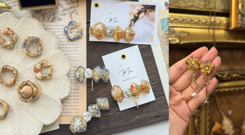 本物のお花を使用したレジンアクセサリーやお花のパーツを使用したハンドメイド作品。「たくさんの可愛いで溢れますように。」をテーマに、日常にそっと寄り添う大人可愛いアクセサリーを制作しています。
