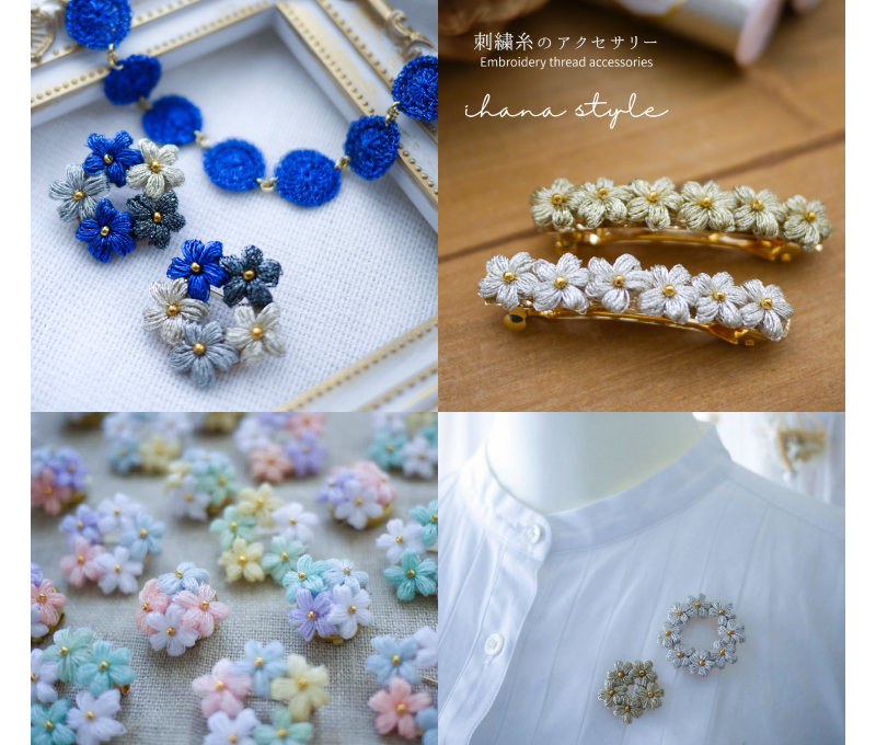 刺繍糸を編み、繊細で洗練されたデザインのアクセサリーを制作。母の日のプレゼントにもオススメです。