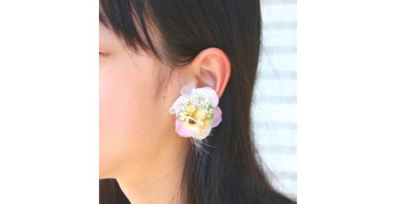| 体験料 | お花のアクセサリー作り 片耳アクセサリー 2,000円 ミニブローチ 2,200円 |